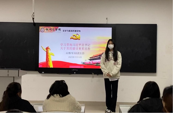 为深入学习贯彻习近平新时代中国特色社会主义思想,学习宣传贯彻党的二十大精神,激发我院学子爱党、爱国、爱社会主义的热情,在院团委的领导下,我院各团支部于11月9日至12日开展“学习贯彻习近平总书记关于党的建设的重要思想”主题团会。