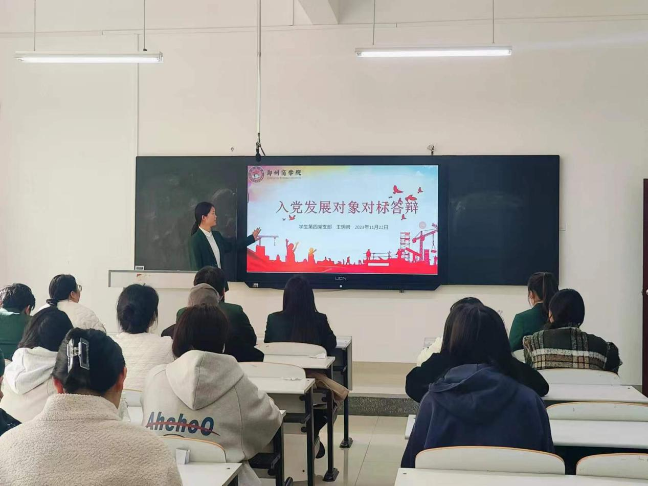 发展对象围绕入党动机、思想变化、在校表现以及存在的问题等方面紧密结合自身实际进行汇报,总结以往的学习工作经验,对未来的努力方向做出了相应规划。随后,学生党支部书记根据发展对象的答辩情况,进行提问并点评,提问内容主要考察党的基本知识、时政热点等,发展对象们认真作答。会议最后,学生党支部书记对本次发展对象对标答辩会进行总结,对发展对象的表现提出认可,同时也指出一些不足之处,旨在勉励发展对象继续努力、改正不足,以积极上进的心态与行动向党组织靠拢。