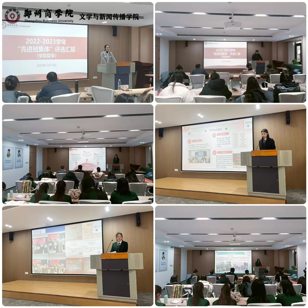 会上,各班代表依次进行汇报,首先对班级概况进行简单介绍,然后重点强调了班级氛围建设、思想价值引领、优良学风建设、三大教育两大工程开展情况等,并展示了班级同学在学科竞赛、文体活动、志愿服务等方面取得的突出成绩。