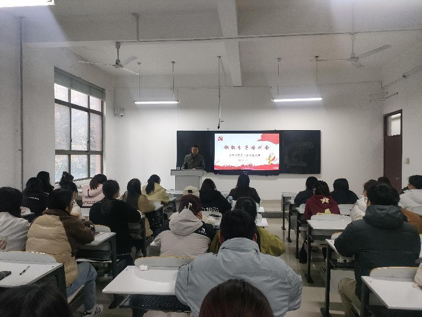 为深入学习贯彻习近平新时代中国特色社会主义思想,进一步完善入党积极分子培养教育,建设高素质学生党员队伍。12月15日中午,文传学院学生第二党支部于自力楼207召开积极分子培训会。本次会议由支部书记牛道恒老师主持,全体积极分子参会。