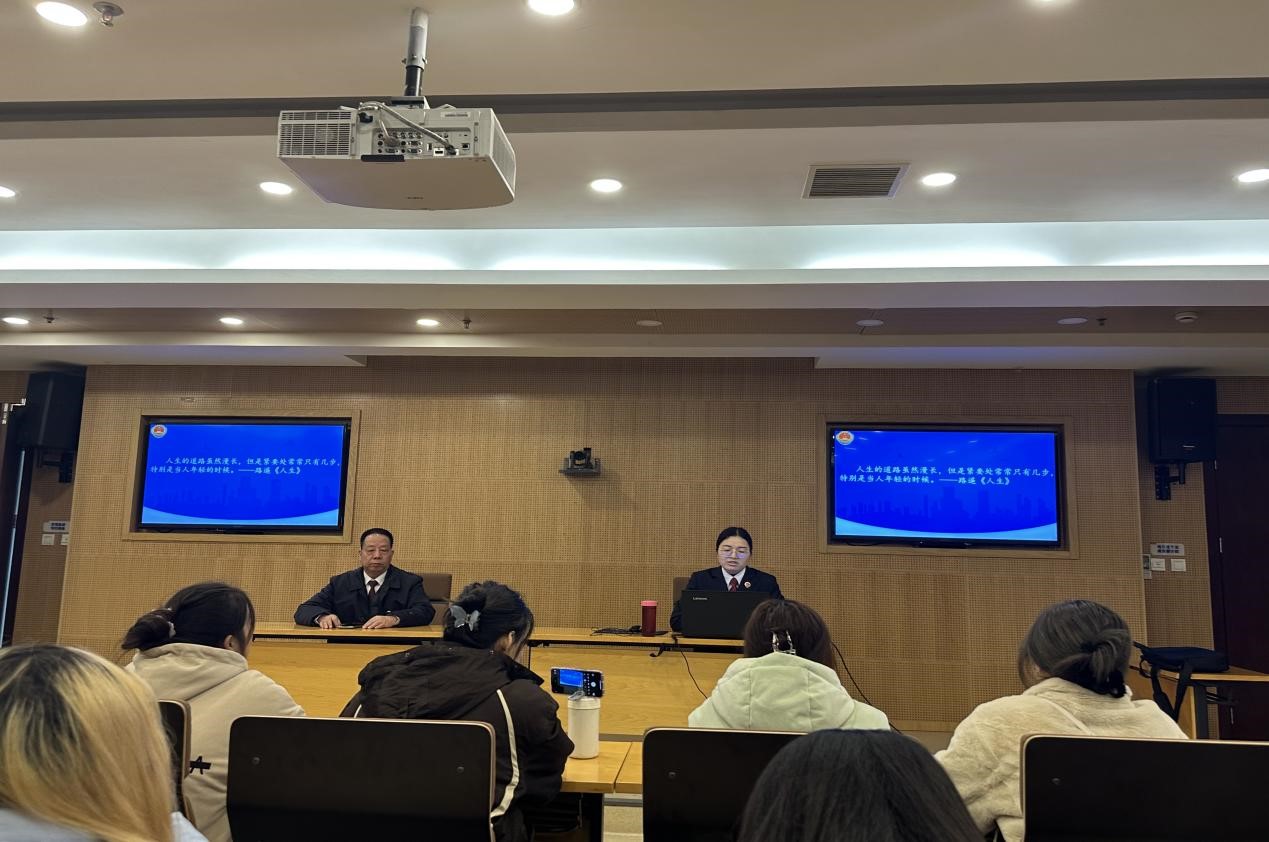 随后,贺晓歌检察官以“法治与青春同行,检察院为青春护航”为主题给师生进行座谈授课,并就如何防范电信网络诈骗罪进行了讲解,贺晓歌分别介绍了电信网络诈骗犯罪的基本情况、电信网络诈骗犯罪关联罪名、电信网络诈骗犯罪常见犯罪手法和防范电信网络诈骗犯罪的方法。贺晓歌总结到,人人都是宣传员、人人当好宣传员,希望各位同学们自己做好防范的同时,也能够主动向家人和朋友宣传防范电信诈骗,全民反诈从我做起,让我们一起筑起防范之墙,共同守护好自己的钱袋子。