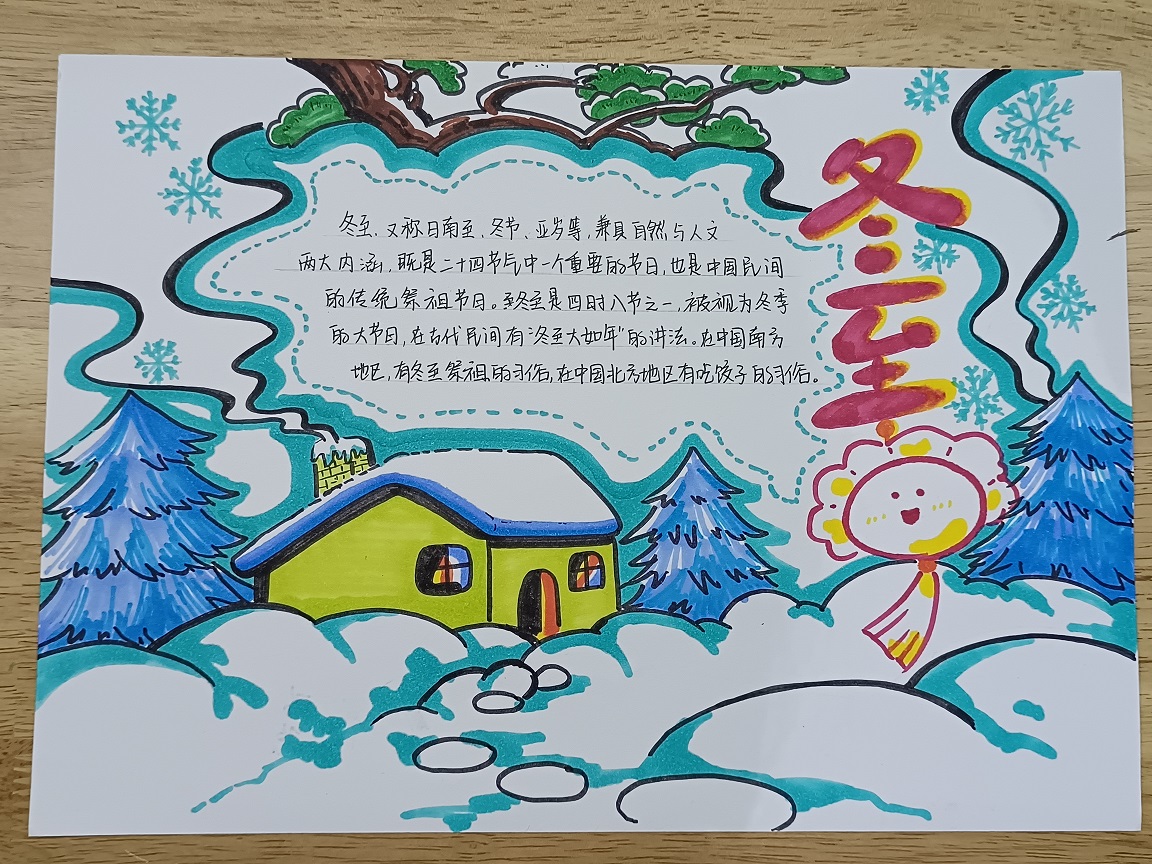 支部学生党员们动手实践制作“冬至”手抄报,学生党员热情高涨,纷纷下笔如有神,一笔一划间,描绘出冬至节气氛围。