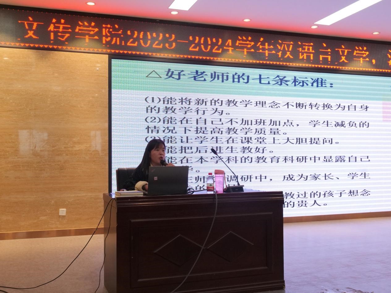 为进一步落实产学协同育人理念,推进证教融合和课技融合,提高学生的综合实践技能,充分发挥实践教学在专业人才培养中的作用,我院文学教研室于12月29日在自力楼学术报告厅开展实习实训讲座,特邀请巩义市实验小学校长王俊景作为主讲嘉宾,分享教学经验及教师招聘要求。文学教研室主任马若晗、实习负责老师丁箐文、杜微微,其他无课教师及21级汉语言文学专业、汉语国际教育专业近500名学生参加了此次活动。