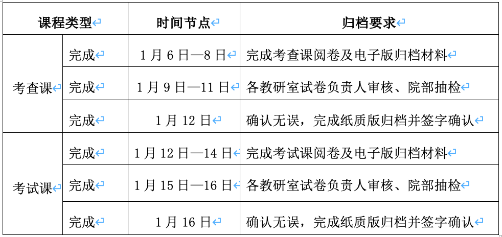 在具体检查中,实行教师本人负责——教研室主任审核——学院质监检查三维一体的试卷检查机制,最终由教学副院长逐一审核。二是细化归档时间,有序推进批阅归档。为保证期末归档资料的质量,根据学校期末考试的整体安排,我院以1月16日为节点,分试卷评阅与材料整理、教研室与学院自查及最终材料归档三个阶段,明确工作任务、时间节点和质量要求,确保全部资料按照要求提交。三是明晰责任到人,落实试卷归档工作。教师作为归档工作第一责任人,对于被发现的问题及时改正。质监办公室强化审核工作,对于归档中的共性问题将进行总结,确保今后的试卷归档避免同类问题的发生,进而逐步提升归档质量。