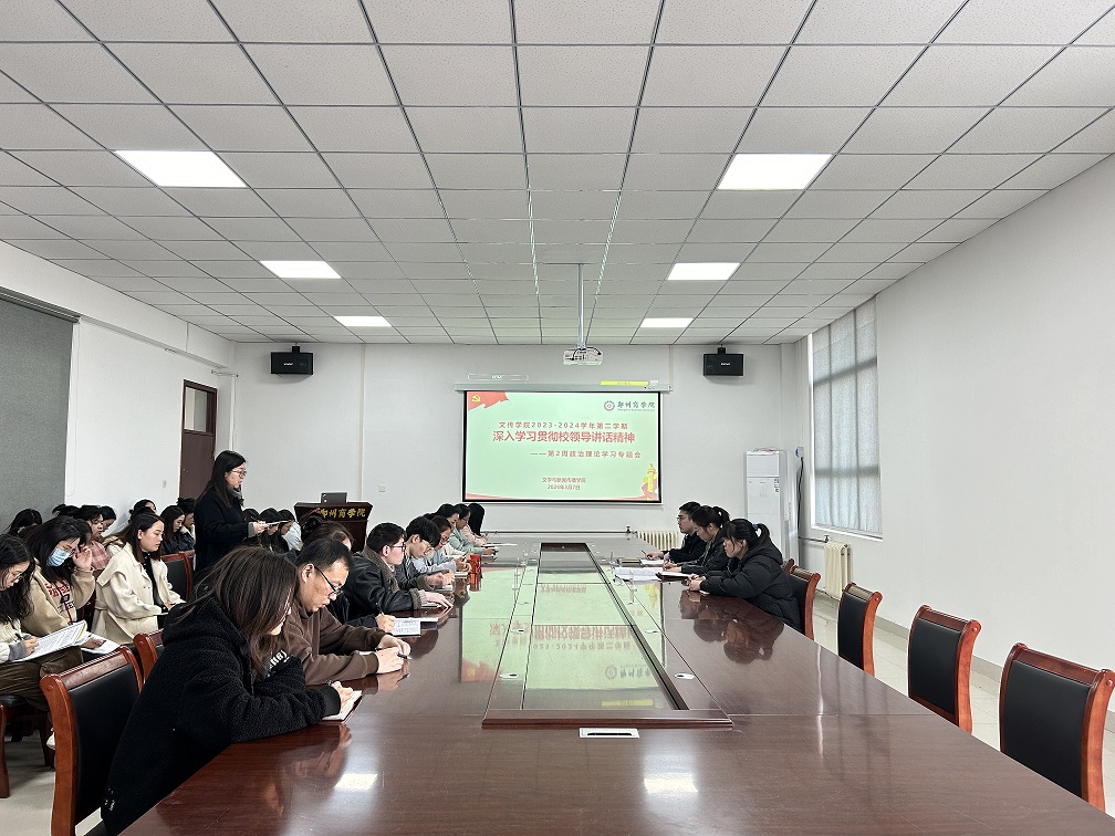 为深入学习校领导讲话精神,确保新学期各项工作的有序开展,落实立德树人根本任务。3月7日14点30分,文传学院于自力楼216会议室开展第二周政治理论学习专题会,文传学院全体教职工共同参加,会议由党委书记贾蓓主持。