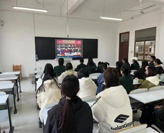 在观看过程中,支部成员全神贯注,深入学习领会习近平新时代中国特色社会主义思想,观看过两会盛况之后,同学们就对两会热点话题进行讨论交流展开热烈讨论,表达了青年一代对国家发展蓝图的向往和对社会进步的不懈追求。