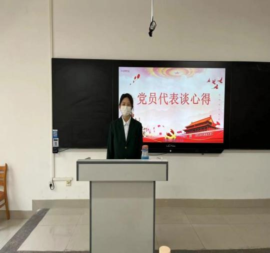 视频观看结束,党员代表李湘分享自己的心得,她谈到作为新时代的青年党员,应密切关注两会动态,贯彻落实两会精神,积极响应国家号召,在学习中增长才干、开阔视野,为把我国建设成为富强民主文明和谐美丽的社会主义现代化强国、实现中华民族伟大复兴的中国梦不懈奋斗;积极分子代表雷择奕分享心得,她提到大学生应提高责任担当,需要积极投身到实践中去,发挥自己的专业特长和优势,为社会的发展贡献自己的力量,坚定自己的理想信念和使命感。为实现中华民族伟大复兴的中国梦贡献自己的青春力量!