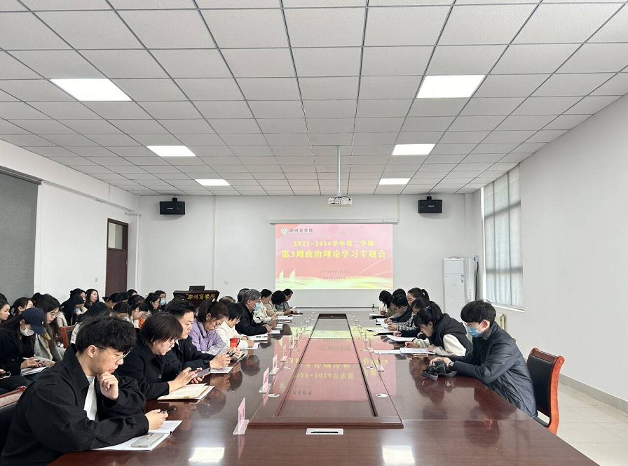 为深入学习贯彻习近平总书记的重要讲话精神以及全国两会精神,进一步推进新一轮审核评估工作的落实,3月14日14点30分,文传学院于自力楼216会议室开展第三周政治理论学习专题会,文传学院全体教职工共同参加,会议由党委书记贾蓓主持。