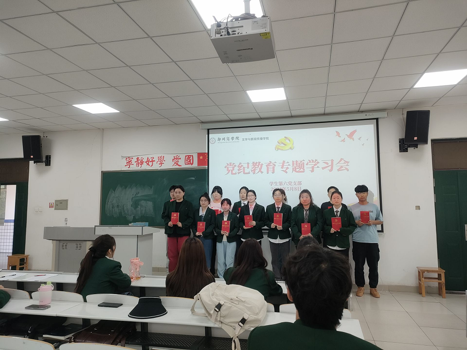 为深入学习贯彻习近平总书记关于党纪学习教育的重要讲话和重要指示精神,落实好党员纪律教育,帮助学生党员牢固树立党章党规党纪意识,文传学院学生第六党支部于5月8日特开展“党纪学习教育”专题学习会。