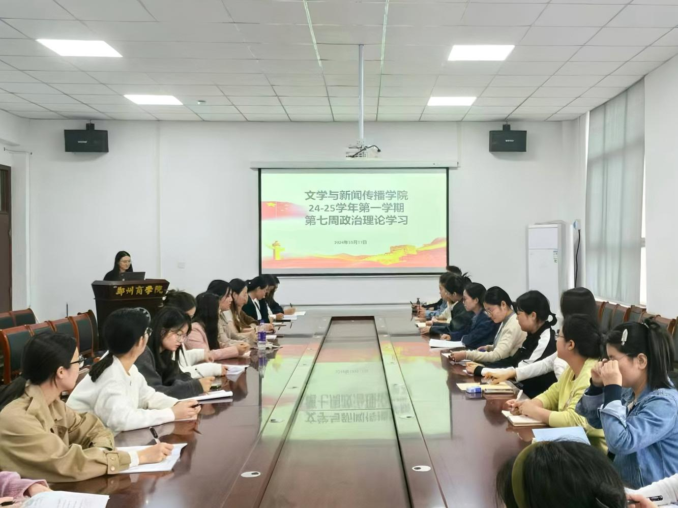 为深入学习贯彻习近平总书记重要讲话精神,落实好立德树人根本任务,准确把握新一轮审核评估内涵,文传学院于10月17日下午组织开展2024-2025学年第一学期第7周政治理论学习专题会。