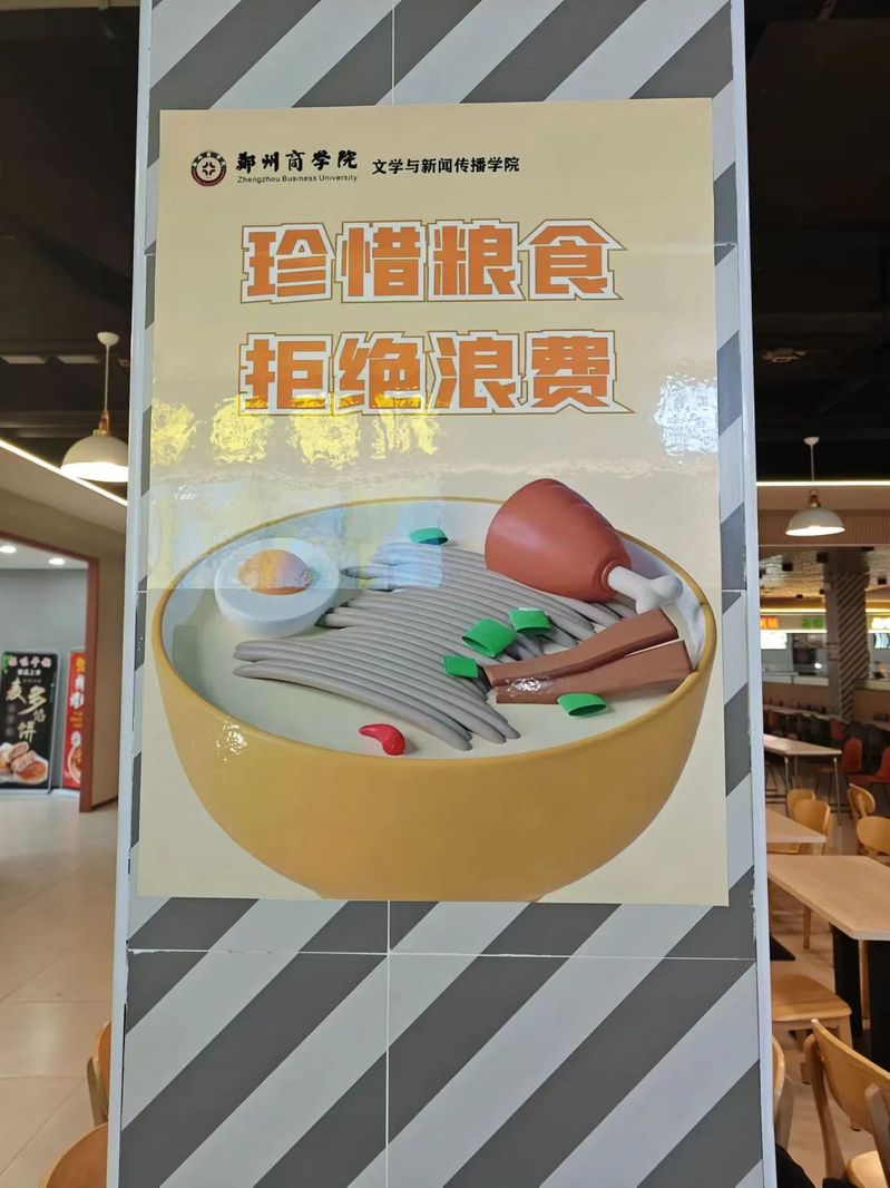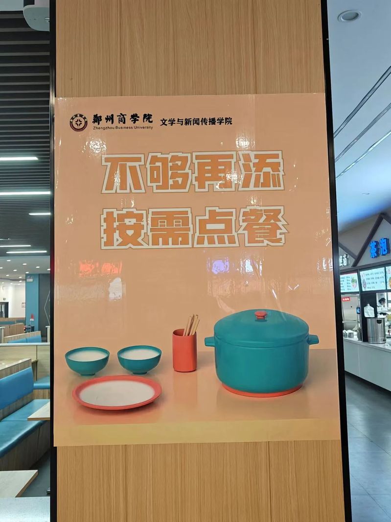 为大力弘扬中华民族勤俭节约的优良传统,营造节约光荣,浪费可耻的餐厅氛围。文传学院加大厉行勤俭节约的传统美德普及力度、反对餐饮浪费的教育力度。因此,文传学院艺术团特开展“爱惜粮食,文明用餐”礼仪专项活动。本次活动通过在餐厅张贴宣传海报的形式号召全院同学向餐饮浪费行为说“不”。