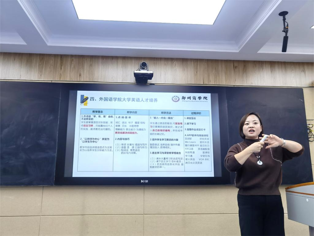 外国语学院在学校全面改革和内涵发展的新阶段,认真研究、梳理大学英语教学改革实施的路径与经验,逐渐形成具有校本特色、动态开放、科学合理的课程体系,服务于学校的国际化商科人才培养特色目标,满足学生的发展需要。