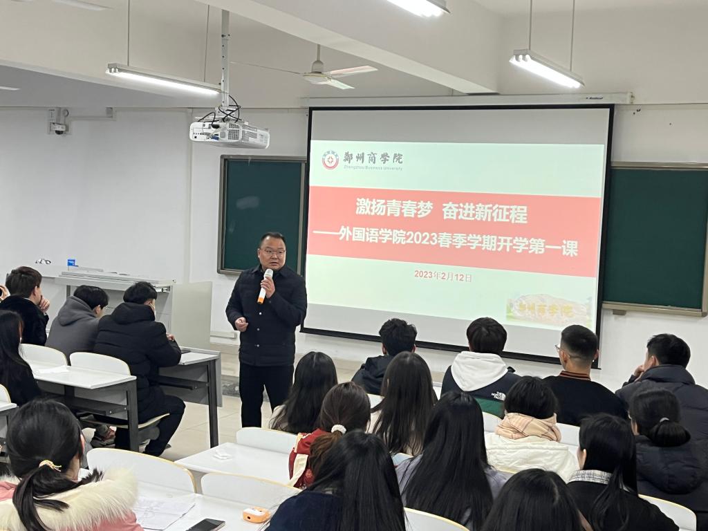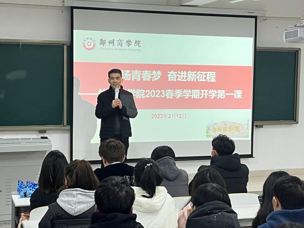 为落实立德树人根本任务,加强学生理想信念教育,引导广大学生积极投入新学期的学习和生活,我院于2月12日晚开展“开学第一课”主题活动。出席本次活动的有学院院长邱培磊、党委书记王克志、大三年级辅导员以及2020级全体学生,本次活动由20级年级长兰敬高主持。