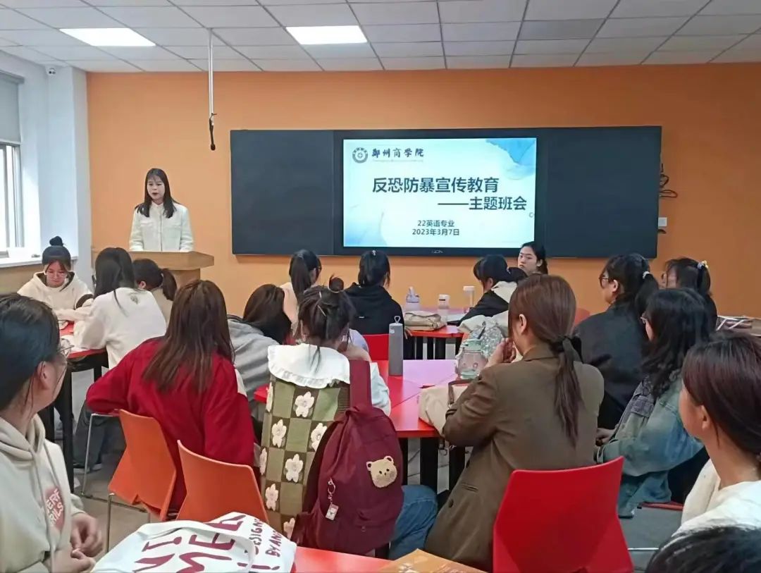 为认真落实校园反恐防暴工作精神和要求,强化校园反恐防暴力度,提高大学生防范危险与自我保护的能力。3月10日下午,我院组织各班开展“反恐防暴,安全教育”主题班会活动。