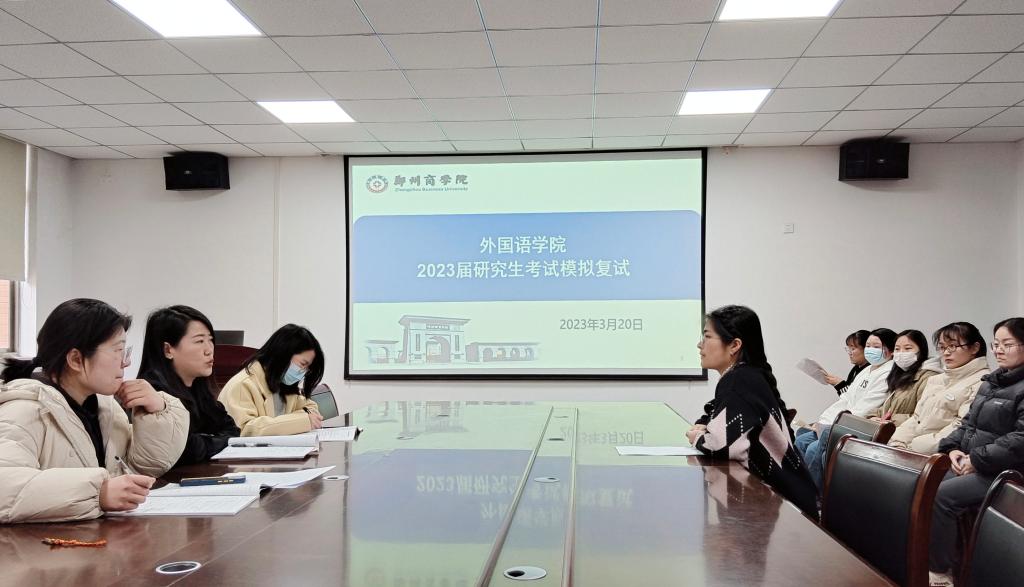 为认真落实冰球官网分层分类教学举措,检验考研学生复试准备情况,帮助更多考研过线学生成功“上岸”,商务英语教研室根据教师专业与特长,分工到人,通过专业辅导与模拟面试等形式,帮助学生做好考研复试准备。