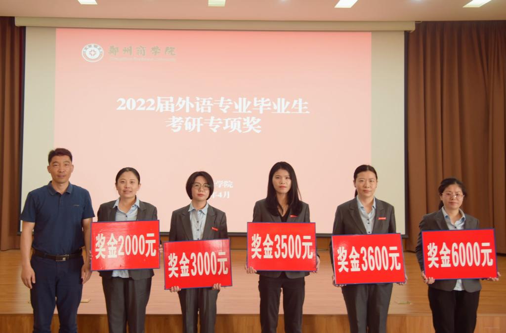 外语专业考研专项奖:学工团队;小语种、翻译、英语、商务英语教研室(自左向右)