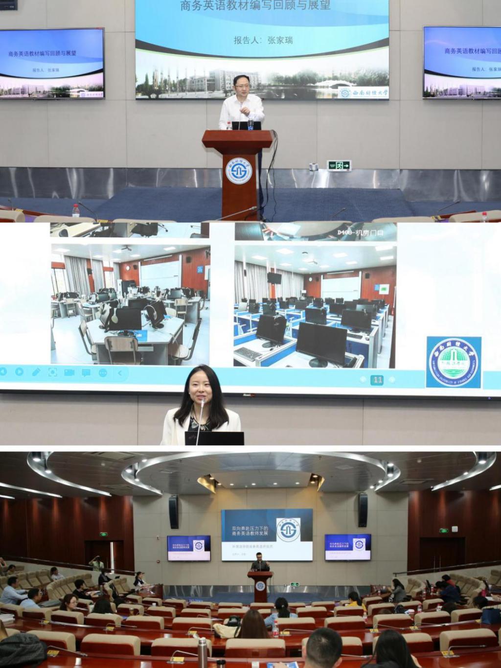 研讨会环节,西南财经大学外国语学院院长张家瑞教授对商务英语教材编写进行了回顾与展望;副院长车瑜就“教育信息化背景下的商务英语实验室建设”进行了汇报;院长助理全智就商务英语师资建设进行了分享。此外,参会人员还就共同关心的教材、实验室、师资队伍建设等问题进行了深入研讨。