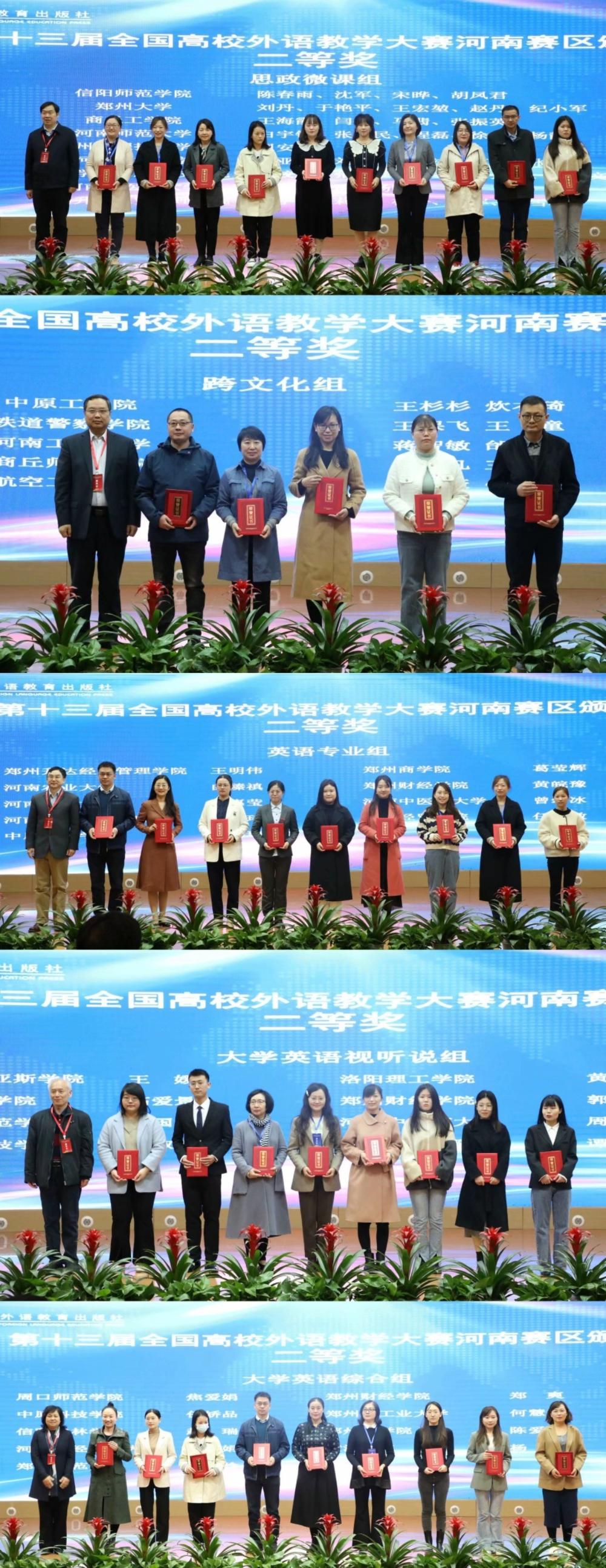 会上,举行第三届“外教社杯”全国高校外语教学大赛河南赛区颁奖仪式,上海外语教育出版社社长孙玉致颁奖开幕辞,河南省省教育厅高教处处长张水潮致闭幕辞。与会领导分别为获奖团队和个人颁奖。