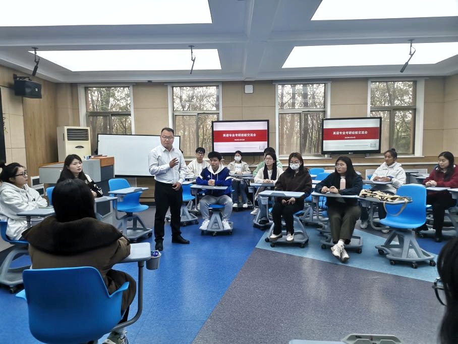 为总结考研经验,帮助20级学生尽快明确方向,更好地准备考研,本周我院英语专业在外语楼104召开了专业分方向考研经验分享会,由19级已成功被录取的几位同学为大家进行考研经验分享,20级学生代表参会。