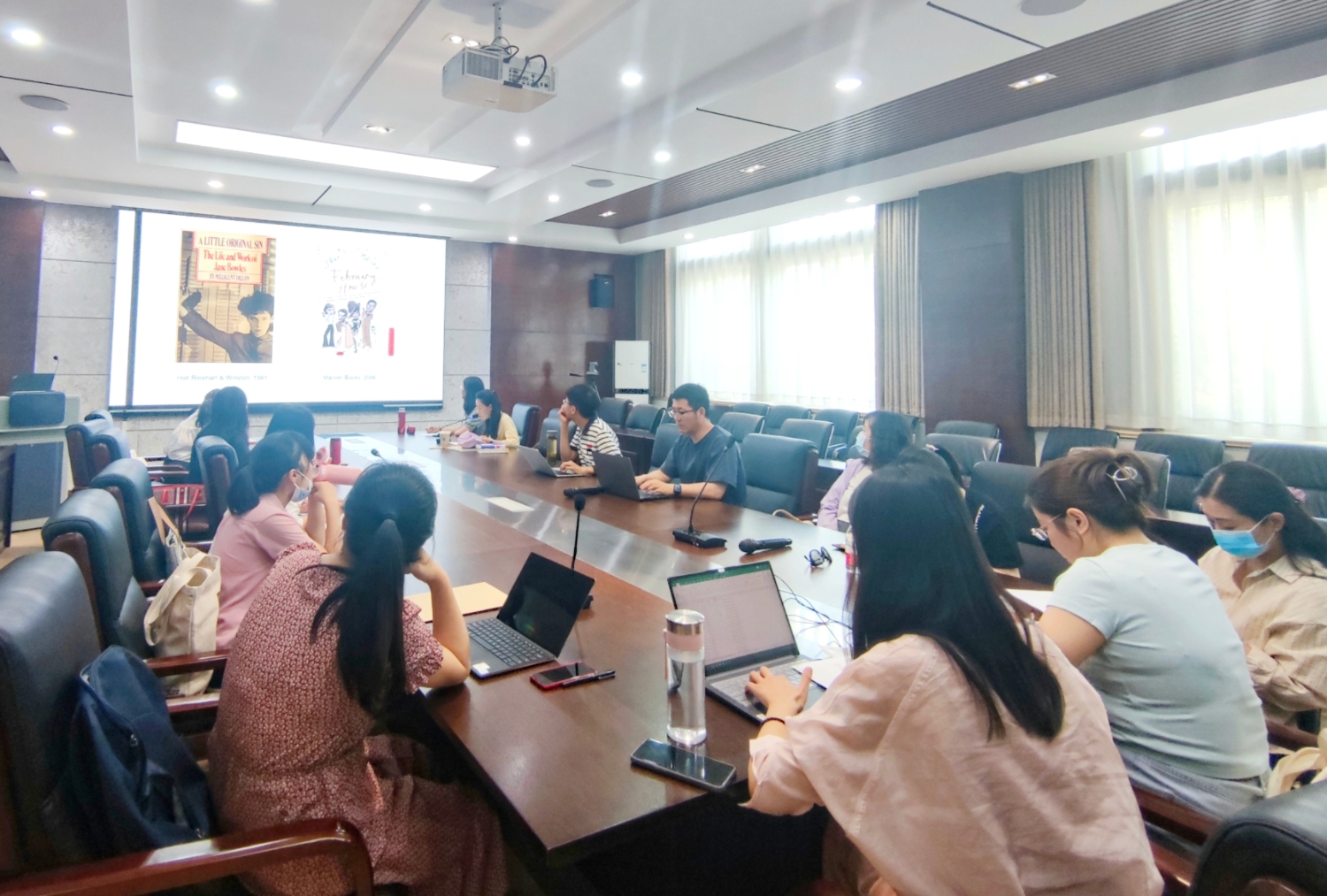 本次活动分为语言学和文学专场。语言学论坛由金慧媛博士主讲,报告主题为《数智时代背景下的省略原因再探》,探讨了现代汉语口语中的省略现象,建立了两个有关省略的依存句法网络模型,从实证角度探析了为何省略现象会频繁出现,却不影响沟通顺利进行的深层原因。文学专场由刘哲博士主讲,报告主题为“救赎之路,欲望之路——简·鲍尔斯《两位严肃女士》评析”,探讨了作家简·鲍尔斯在《两位严肃女士》中的救赎之路是“安全”、“自由”还是“疯狂”。张莉教授对文学专场进行总结,她指出,文学的作用在于为人类提供了普遍经验,现实生活中我们经常与自己无法达成和解、认同,阅读可以让人类更加了解自我、自我疗愈,进而实现自我启迪、开解、引导。