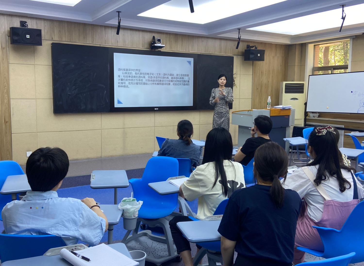 6月14日下午,我院翻译专业教研室教师贺琳和大学英语教研室教师宣菡静在W104智慧教室为我院无课教师开展学术转训汇报,转训内容为两位教师参加在浙江工商大学举办的第六届全国语料库翻译学研讨会主旨内容与研究心得。