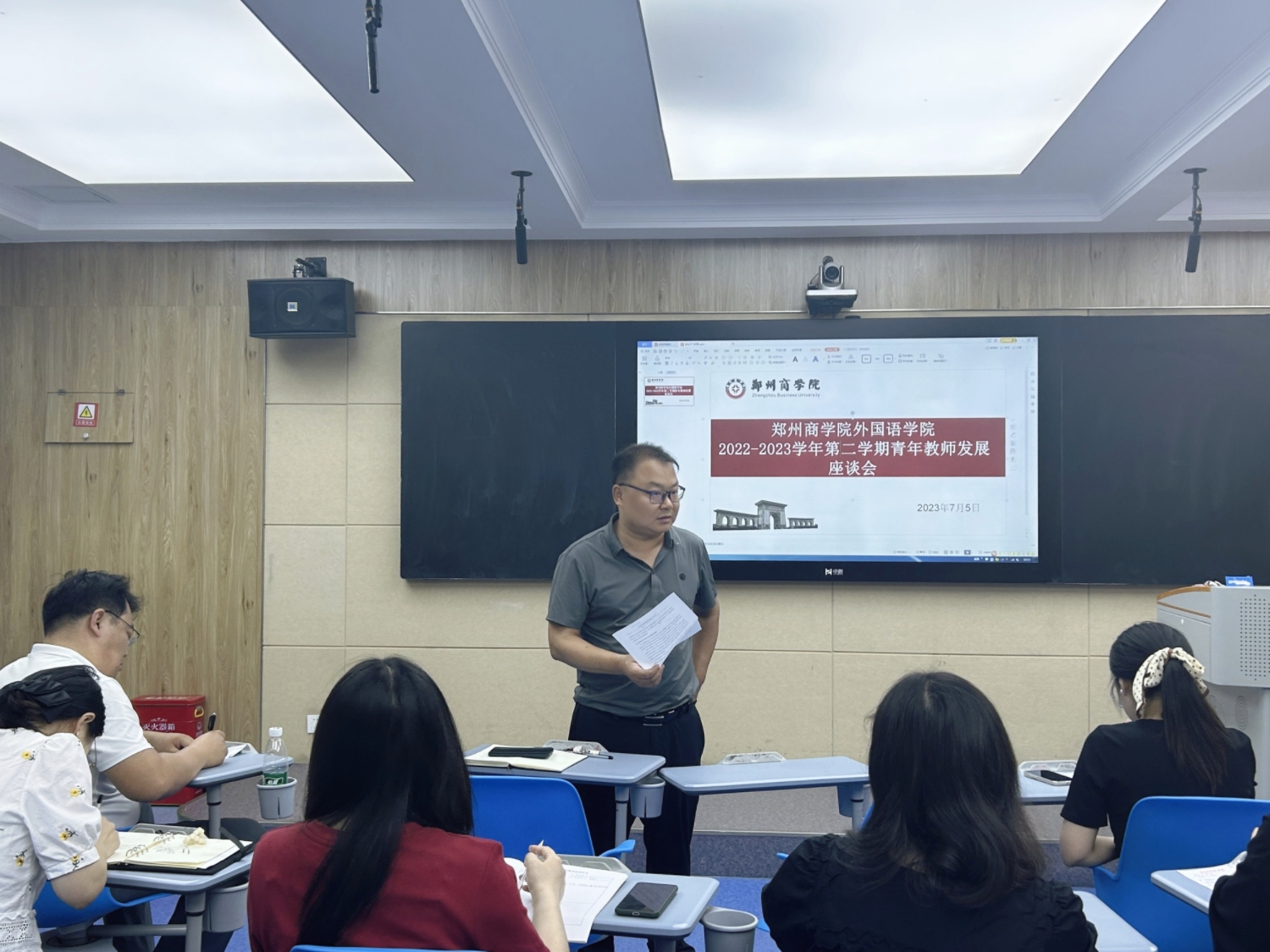 为进一步加强学院教师队伍建设,促进青年教师成长,2023年7月5日上午,我院在外语楼W104召开2023年青年教师座谈会。院长邱培磊、副院长赵保成以及我院青年教师共20余人参加座谈会。青年教师代表分享了入职以来个人学习、工作方面的情况和生活感悟,对自己进校以来工作上的体会和心得进行了分享。座谈会上祖静老师、贺琳老师结合自身的学习和工作经历,从不同角度分别分享了自己从教以来在教学、科研实践中的心得体会。