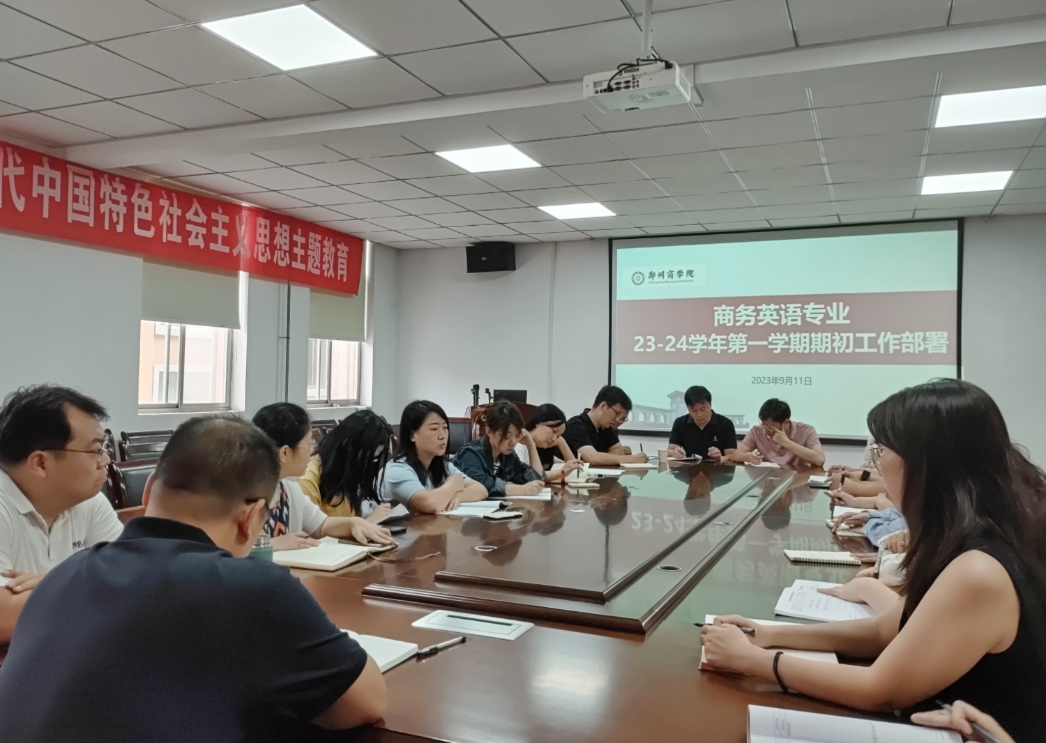 2023年9月11日上午,我院商务英语专业教研室在外语楼W209召开期初教学工作部署会议。院长邱培磊、副院长赵保成、教研室主任葛莹辉及商务英语教研室全体教师参加了此次会议。