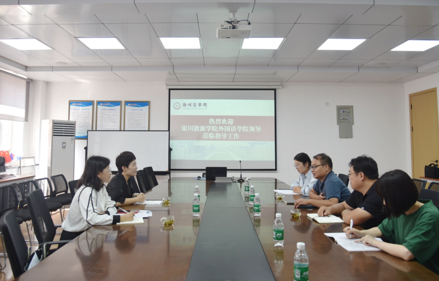 9月22日,银川能源学院外国语学院院长李鑫、副院长闵翠莅临我院参观交流,并在外语楼W107举行了座谈会。我院院长邱培磊、副院长赵保成、商务英语教研室主任葛莹辉及商务英语教研室教师段田园、董艺参会,会议由院长邱培磊主持。