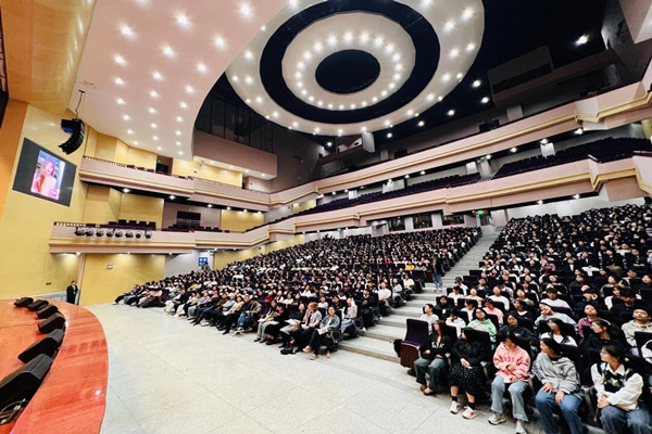 邱院长从学校发展历程、专业发展前景、专业建设成果、学业发展规划四个方面为大家作了详细讲解:一是介绍创办人办学历程和学校发展历程,帮助同学们尽快了解校史校情;二是详细介绍商务英语、英语、翻译、日语、德语专业的特色发展及未来发展前景,帮助同学们树立专业意识,拓宽专业视野;三是为新生介绍学科专业建设,讲解专业建设成果,引导新生宏观把握大学学习方向、微观制定个人努力目标;四是鼓励新生做好学业发展规划,立足课堂,夯实基础,并寄语新生:要心怀天下,志存高远,做一名“爱生活、懂礼仪、肯钻研、能坚持”的大学生。