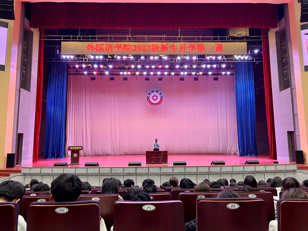 为加强2023级新生思想政治教育,帮助新生尽快适应大学生活,增强对所学专业的认同感,10月11日18点,我院于成功大会堂开展2023级新生第一课。院长邱培磊、党委书记王克志、副院长赵保成、教学秘书焦娇、团委书记王子浩、全体辅导员、外教老师Shay、巩义市孝义宏英机械厂总经理刘音妍、21届优秀校友代表吕晶晶、24届优秀实习生代表王俊敏及全体2023级新生参会。此次会议由2023级年级长王忠芝主持。