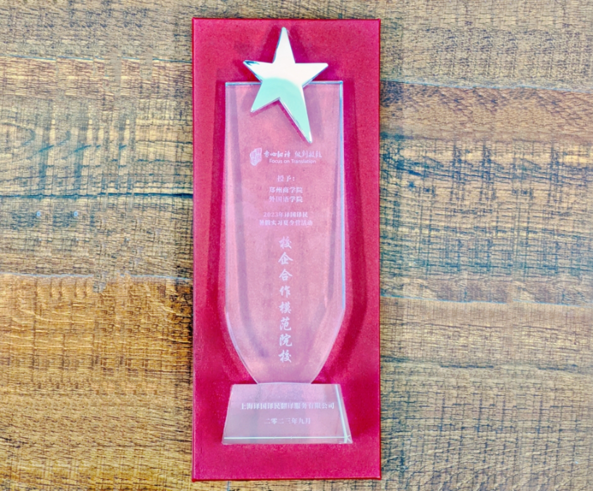 我院共有99位学生参加并通过了此次为期4周的线上实习项目,获得译国译民公司颁发的实习证明。同时,我院共有5位老师被评为优秀指导教师。我院也因为组织有序、学生参与度高而被译国译民公司评为2023年度暑假实习“校企合作模范院校”。