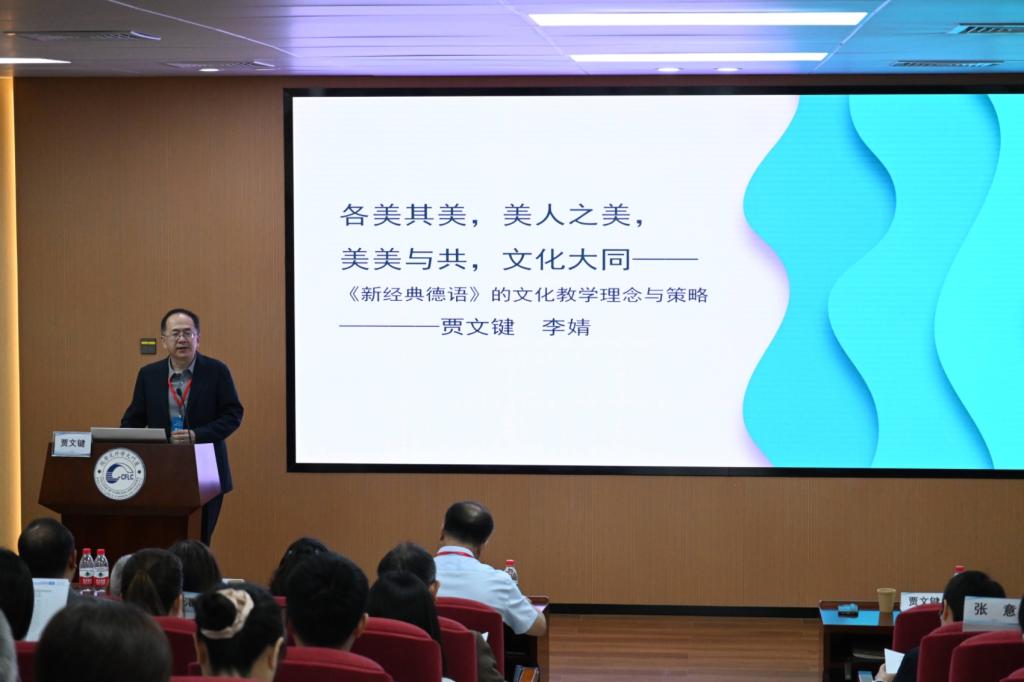 主旨报告环节,贾文键教授以“各美其美,美人之美,美美与共,文化大同——《新经典德语》的文化教学理念与策略”为题,介绍了德语专业基础教学阶段推出的新系列教材,重点强调了新教材注重弘扬中华优秀传统文化、革命文化、社会主义先进文化。Sabine Wilmes女士概述了歌德学院的语言工作。浙江大学的李媛教授以“数智赋能背景下德语教学与研究新探索”为题,阐述了数字化时代德语教学的新路径及线上线下融合式教学的重要意义。Katharina Quicker女士以“Brücken bauen - Einblicke in die Arbeit als DAAD-Lektorin an der XMU”为题介绍了其在厦门大学及德国学术交流中心的主要工作。南京大学的常晅博士和厦门大学王凡柯副教授分别以“新文科理念下‘德语+法学’复合型人才培养的实践探索”和“以问题为导向的‘外语+’复合型人才培养路径探索”为题,介绍了南京大学德语系和厦门大学德语专业复合型人才培养项目。