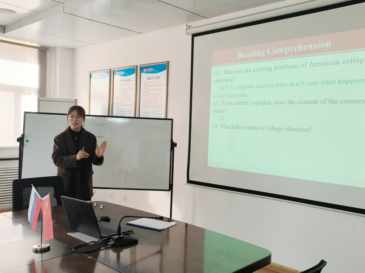 为进一步提升我院新入职教师教育教学水平与综合素质,我院于11月2日上午在外语楼W107举办新入职教师教学技能大赛复赛。本次比赛采取“说课+授课”的形式,经初赛选拔出的5名教师参赛。比赛由我院大学英语第一教研室主任宣菡静、德语专业负责人魏广龙老师、英语专业教研室张艳玲副教授、大学英语第二教研室张文娟副教授、商务英语教研室翟茹洁老师、翻译教研室杨情老师担任评委。