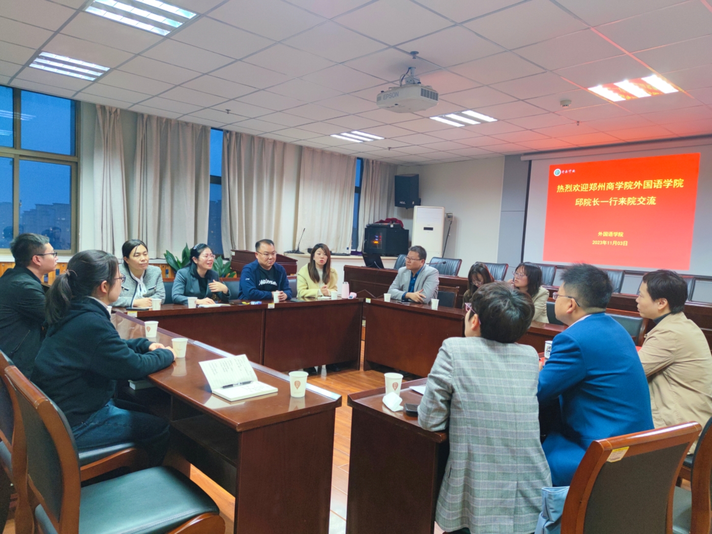 2023年11月3日下午,我院院长邱培磊带领师生一行16人赴许昌学院外国语学院交流学习,许昌学院外国语学院副院长曾尔奇、商务英语教研室主任付一帆与教师代表热情接待,双方就商务英语专业建设与发展进行了交流。