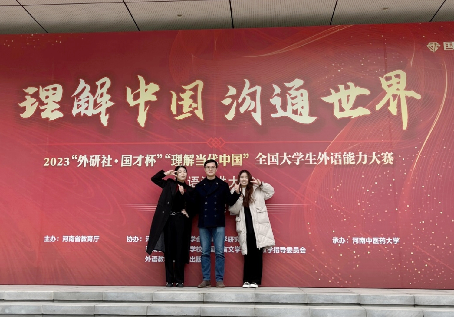 2023年全国大学生外语能力大赛英语演讲大赛河南赛区复赛由河南省教育厅主办,河南省高等教育学会外语教学研究分会、河南省普通高等学校外国语言文学类专业教学指导委员会、外语教学与研究出版社协办,河南中医药大学承办。本次复赛共有来自省内62所院校共计124名选手参赛。我院经过校赛选拔和赛前精心培训,最终选派辛宇春和张佳怡同学作为代表,由我院教师郭彪带队参加于11月11-12日在河南中医药大学举行的河南省赛区复赛。