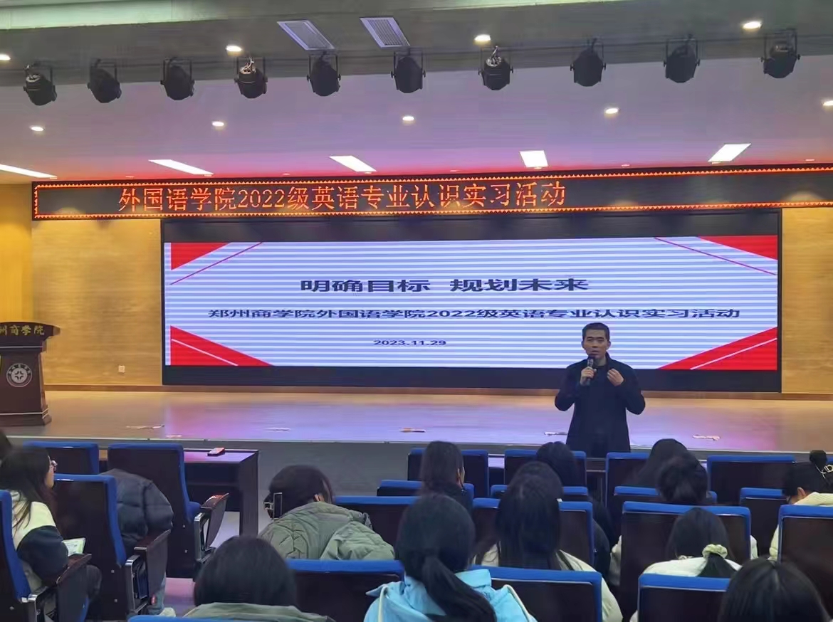 为帮助学生确立明确的专业学习方向和职业生涯规划,充满信心地开启学习生活,11月29日,我院英语专业在自力楼三楼报告厅召开2022级英语专业认识实习活动。我院党委书记王克志,副院长赵保成,英语专业认识实习负责教师程玮、张艳玲、李娜、杨嘉琪、刘文婷等出席本次启动会。启动会由赵保成副院长主持,2022级英语专业全体学生参加此次会议。