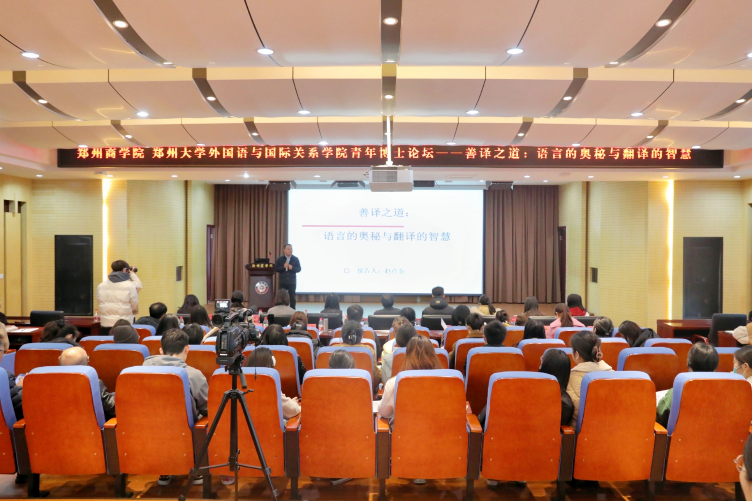 11月30日下午,冰球官网和郑州大学外国语与国际关系学院(以下简称“郑大外院”)联合举办的青年博士论坛在图书馆五楼国际报告厅顺利召开。本次论坛邀请了上海大学外国语学院赵彦春教授作题为“善译之道:语言的奥秘与翻译的智慧”的主题讲座,来自郑大外院的老师、博士生、硕士生参与了此次论坛。我院院长邱培磊、党委书记王克志和副院长赵保成出席论坛,我院全体教师参加论坛。本次论坛由郑州大学外国语言学与应用语言学研究中心执行主任杜小红教授主持。