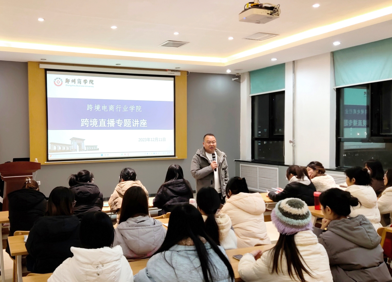 最后,葛莹辉主任对本次讲座进行了总结,并鼓励同学们积极提问、踊跃发言,现场气氛十分热烈。同学们就跨境直播产业前景、行业技能培养等方面与聂威老师进行了深入交流,聂老师的回答也为同学们打开了新的思路,激发了学生们对于跨境直播的热情。同学们表示受益匪浅,会认真学好专业课程,不断提高自身综合素质与商务实践能力,为未来职业发展打下坚实的基础。