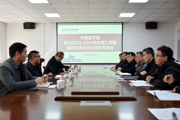 校党委副书记裴晓涛讲话。裴书记对外国语学院一年来的工作开展与成效充分肯定,并带领我院集中学习期初董事长讲话和校领导工作报告。裴书记表示,董事长的讲话温暖深情,吴书记、吴校长的报告令人振奋,他们分别对新学期工作进行了总体安排和全面部署,学院要组织教职员工深入学习、深刻理解,紧紧围绕学校总体目标,扎实开展各项工作。裴书记就做好本学期工作提出四点要求:一是要从20周年发展中汲取力量,总结展望重新出发。学院要以建校二十周年校庆为契机,全面梳理回顾20年学院历史,彰显20年办学成就,让20周年校庆系列活动成为联结广大师生校友的纽带,共谋发展新蓝图。二是要聚焦聚力质量提升,扎实推进审核评估。学院要认真研究、积极谋划审核评估指标体系,进一步优化学院审核评估工作方案,常态化、高质量推进教育教学各项工作。三是要落实立德树人根本任务,提升学生工作育人实效。学院要持续创新丰富“三大教育,两大工程”载体和形式,将其贯穿立德树人全过程,激发学生们强烈的社会责任感,自觉成长为有理想、敢担当、能吃苦、肯奋斗的新时代好青年。四是要织密织牢校园安全防线,切实维护校园安全稳定。进一步健全和完善安全工作各项规章制度,深化管理,扎扎实实把学校安全工作落实,确保安全有序、稳定可控。