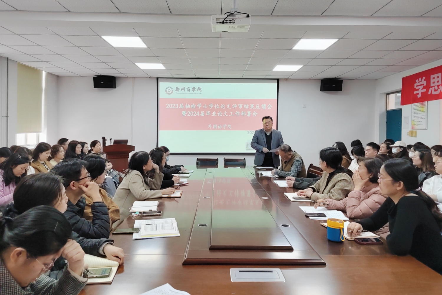 为进一步推进本科毕业论文指导工作,提升教育教学质量,3月14日下午,我院在W209会议室召开2023届抽检学士学位论文评审结果反馈会暨2024届毕业论文工作部署会,我院副院长赵保成以及全体无课教师参加了会议。