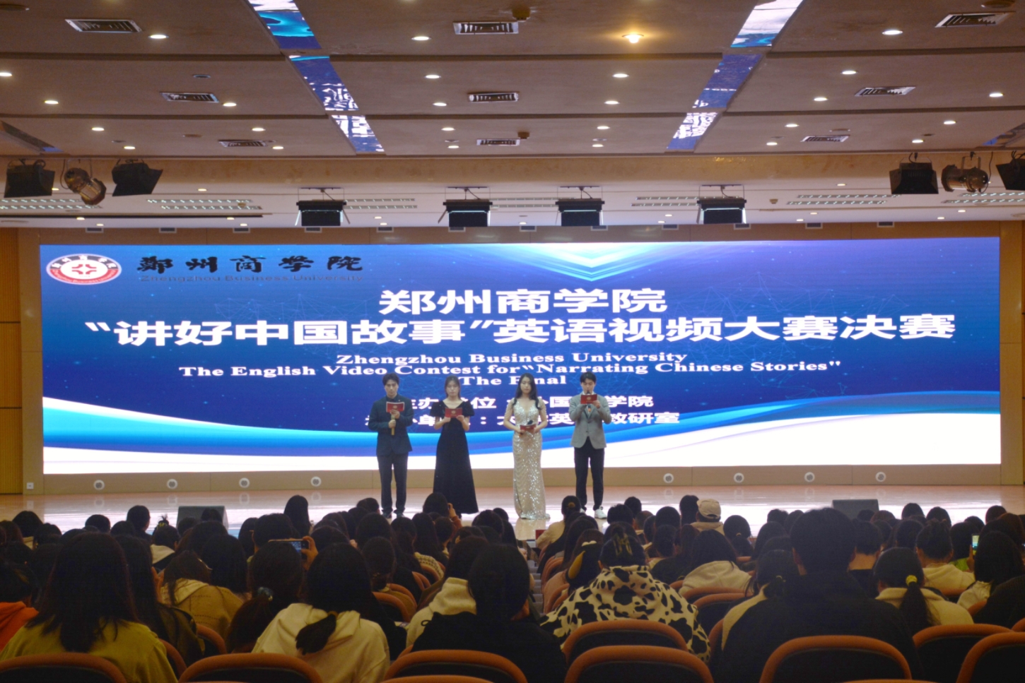 3月20日晚,由冰球突破mg正规官网外国语学院主办,大学英语教研室承办的第四届“讲好中国故事”外语视频大赛决赛在图书馆一楼国际报告厅成功举办。外国语学院副院长赵保成、各教研室教师代表和各学院学生观众500余人观看了本场决赛。