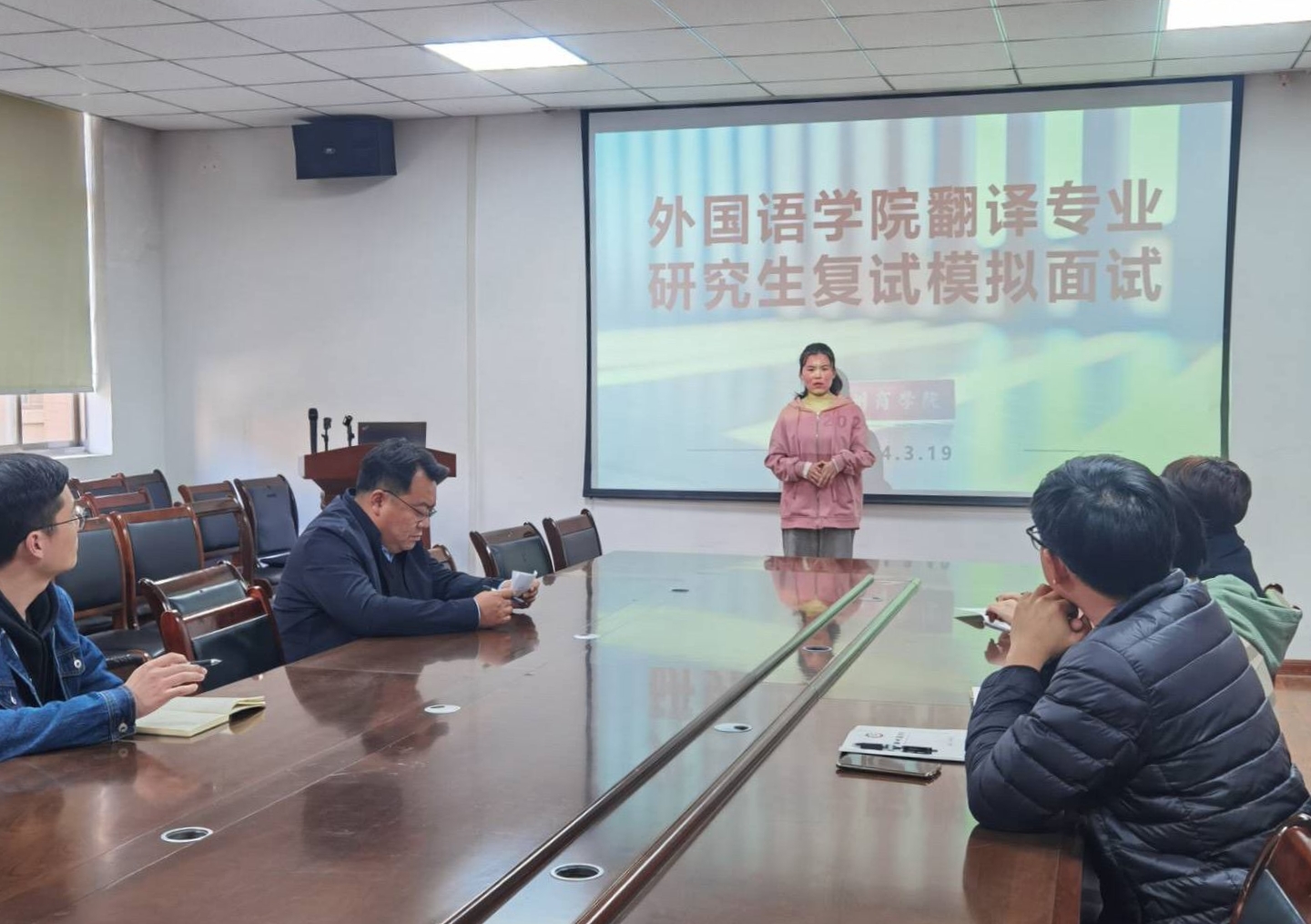 2024年3月19日至21日,我院翻译专业成功举办了为即将进入研究生阶段的学子们准备的模拟面试活动。这次活动的目的是帮助学生们熟悉复试流程,提升他们的面试技巧和自信心。