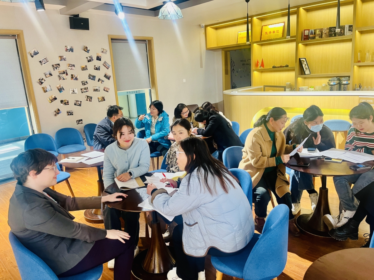 沙龙由外国语学院外教教研室主任高爱景主持,外籍教师Emily Canaday 主讲。首先,Emily老师介绍了TESOL教学模式和理念,TESOL(Teaching English to Speakers of Other Languages)课程,即对外英语课程。在英语母语国家,尤其是美国等移民国家的TESOL课程设计从学生学习方式、教师角色界定、教学内容的专业性、多元文化的渗透、课下活动的构建、网络资源的应用呈现了多样化和个性化。英语母语国家的TESOL课程具有前瞻性和示范性,对我国外语教学可提供借鉴的经验和启示。其次,与会教师围绕Emily提出的5个问题分组进行研讨交流,各自分享教学经验和实践案例。这种讨论的方式不仅加深了老师对TESOL教学理论的理解,而且通过研讨老师可以提出一些解决课堂实际问题的对策。