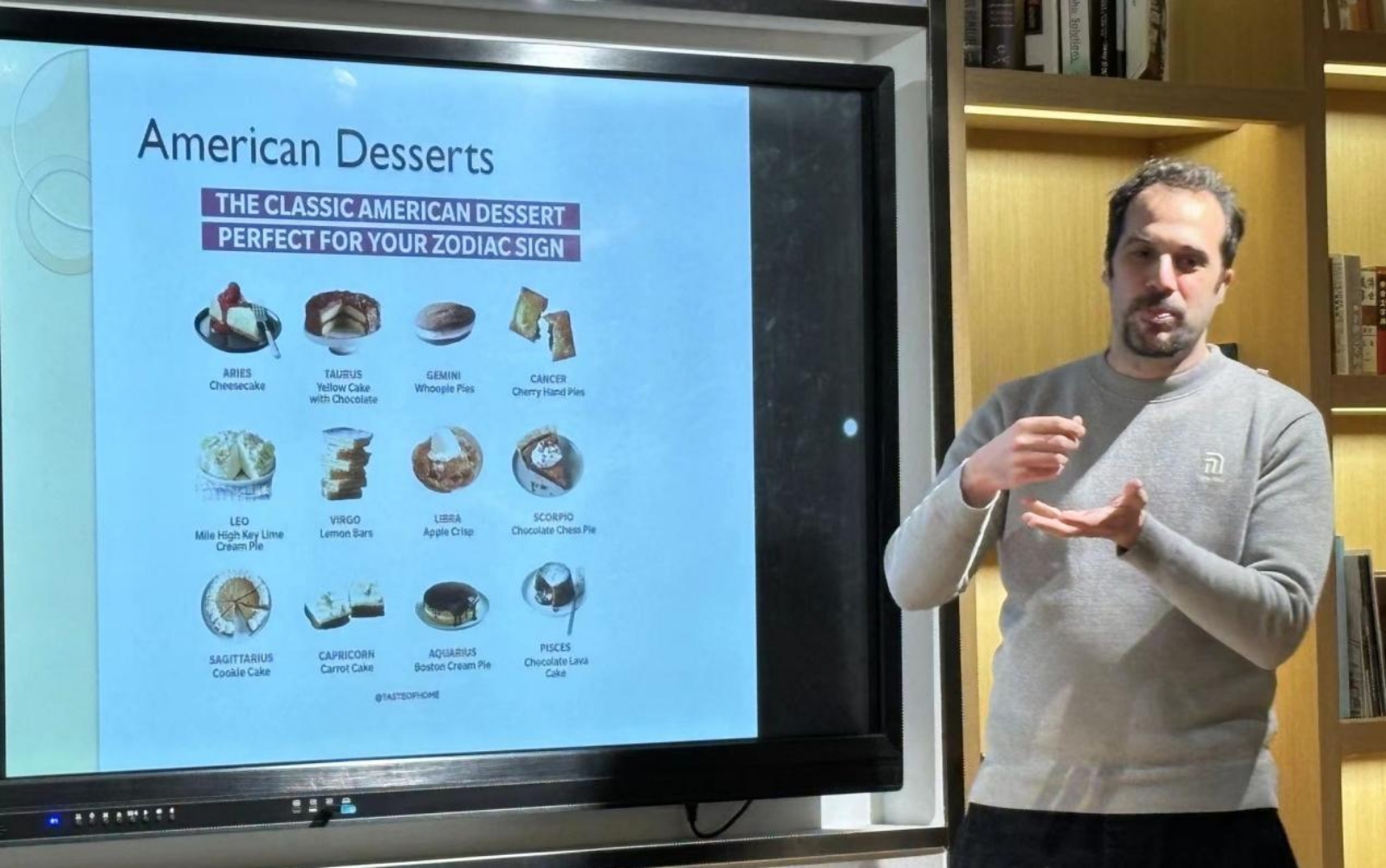 为进一步提升学生国际化视野,积极推进校园文化国际化建设和提高多元化育人成效,外国语学院于3月27日晚七点在W102多元文化交流厅举办了多元文化角第一期活动,本次活动由外籍教师Talal主讲,介绍美国经典甜品及三餐美食文化。