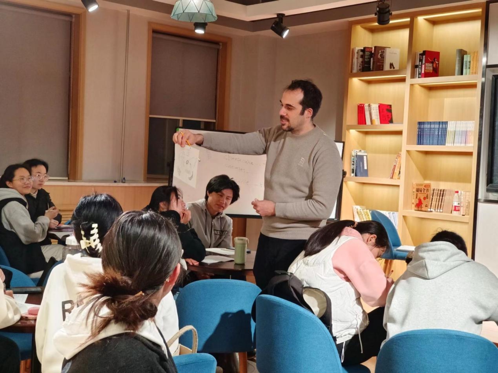Talal向学生展示他的美食手绘