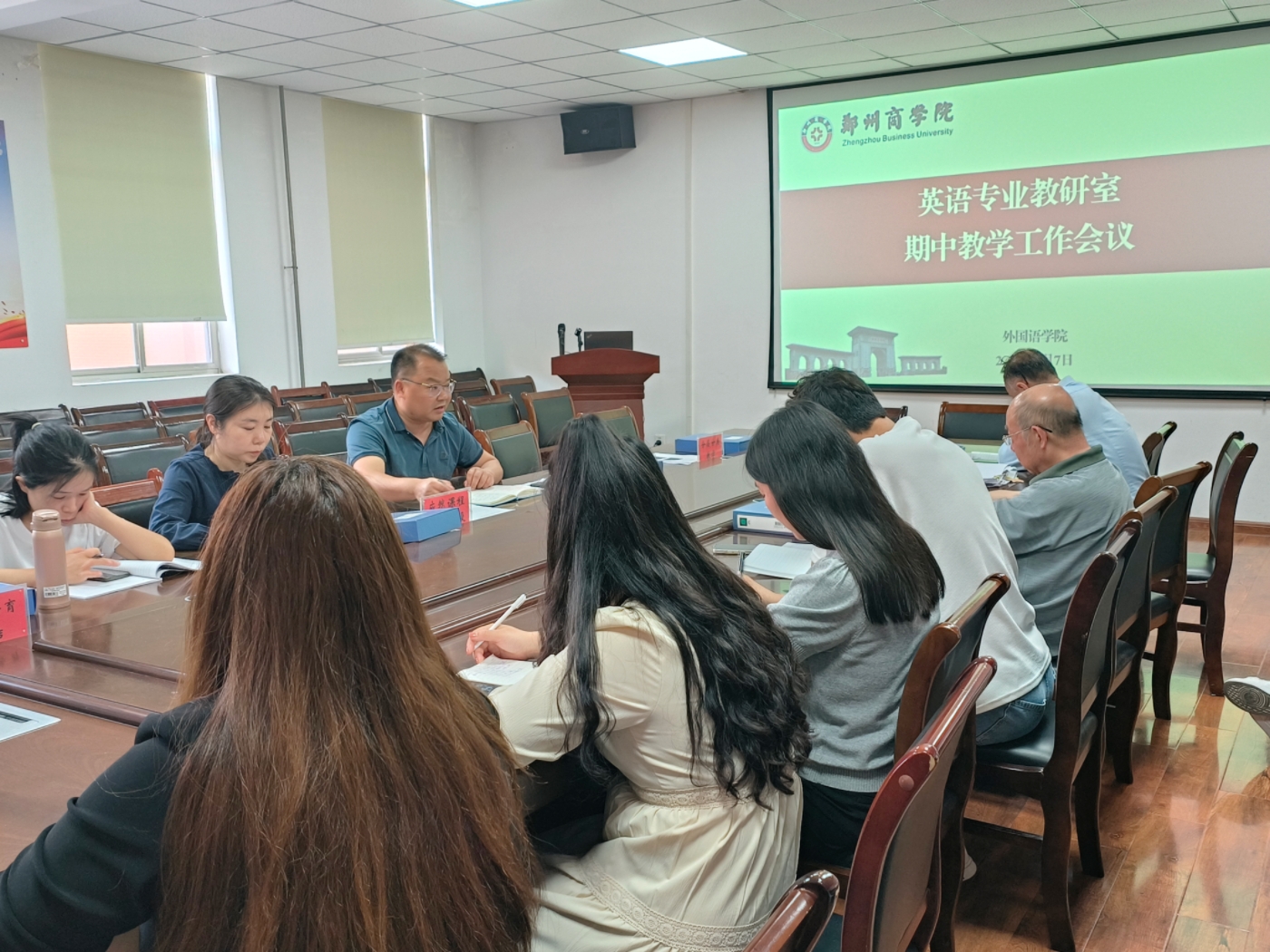 5月7日下午,我院英语专业教研室于外语楼W209召开期中教学工作会议。本次会议由教研室主任程玮主持,院长邱培磊及教研室全体教师参加此次会议。