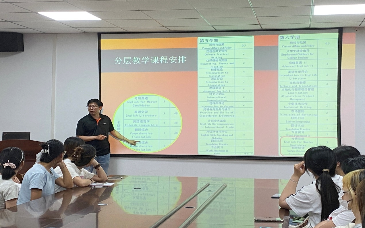 6月5日晚,我院22级翻译专业举行分层分类教学动员会议。本次会议目标明确,力求通过分层分类的教学改革措施,显著提升翻译教学品质并激发学生们的学习激情与自发性。会议由翻译教研室负责人郜万伟老师主持,22级翻译专业全体学生和部分翻译专业教研室老师参加了会议。