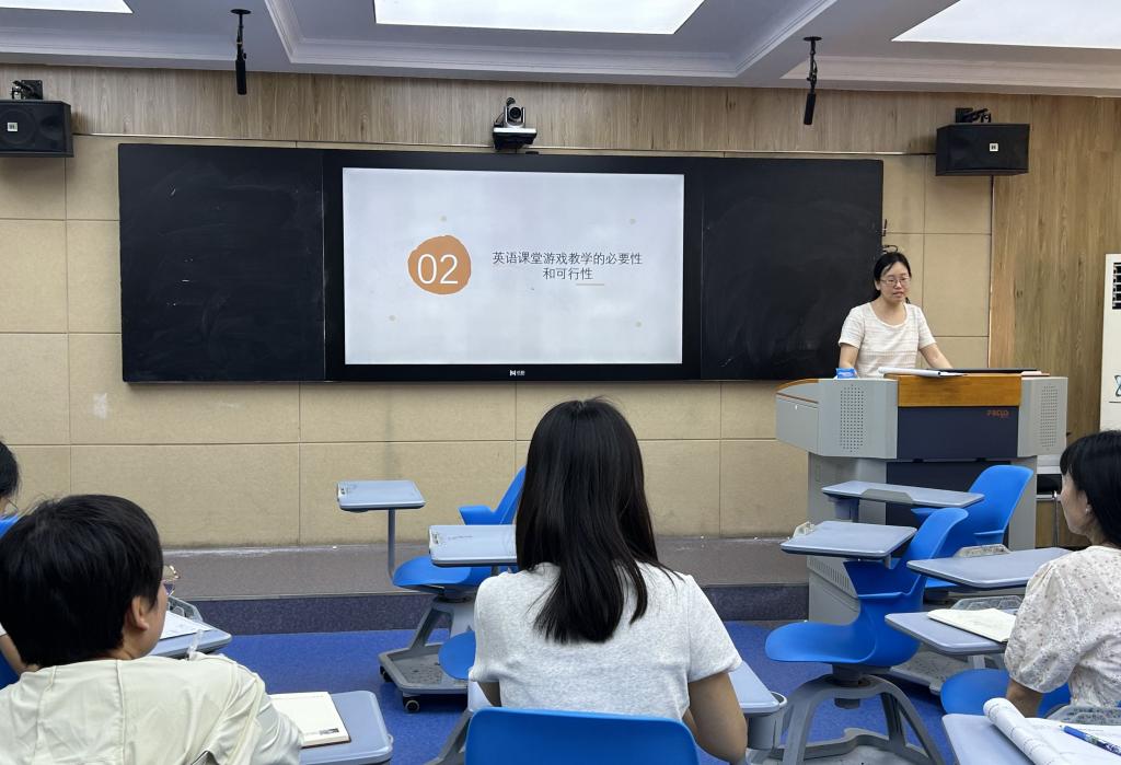 首先,彭老师提出“在大英课堂中实施游戏教学的必要性与可行性”这一议题,引发参会教师的思考和讨论交流。