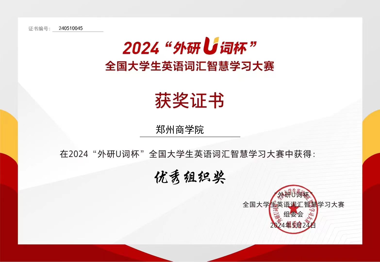 2024全国大学生英语词汇智慧学习大赛由外语教学与研究出版社主办,是面向全国高校非英语专业大学生的英语词汇能力竞赛。大赛旨在以赛促学、以智助学,为大学生搭建词汇学习交流的有益平台、激发大学生英语词汇学习兴趣、丰富词汇储备、筑牢英语基础。我院大学英语教研室教师积极组织全校非英语专业本科生积极参与比赛,共有1000余名同学参与此次大学生英语词汇智慧学习大赛。大赛组委会授予冰球官网“优秀组织奖”称号。