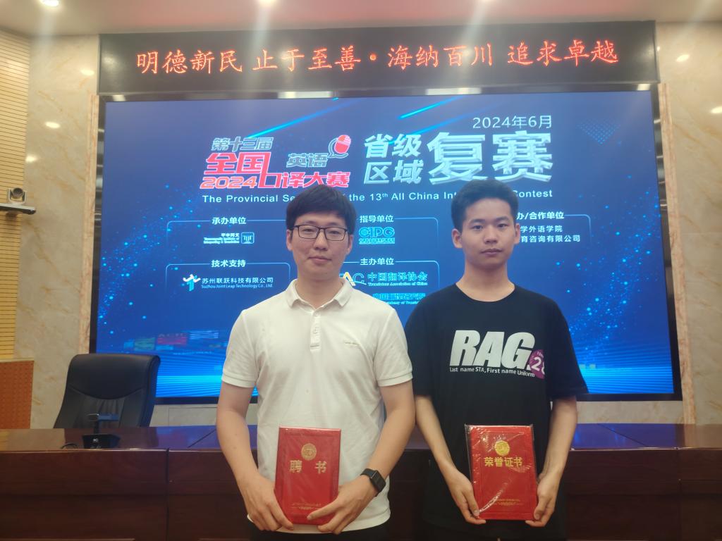 2024年第十三届全国口译大赛(英语)河南省级区域复赛于6月22日在河南大学举行。来自省内二十余所大学的65名本科和硕士学生参加了比赛,由我院教师徐浩带领的21商本4班高浩楠凭借过硬的专业技能和出色的发挥荣获省级区域赛复赛一等奖。